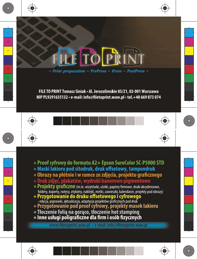 Graphic design Business card sample - Print preparation services FILE TO PRINT Tomasz Siniak Warsaw Poland / Projekt graficzny Wizytówka przykład - Przygotowanie do druku FILE TO PRINT Tomasz Siniak Warszawa www.filetoprint.waw.pl